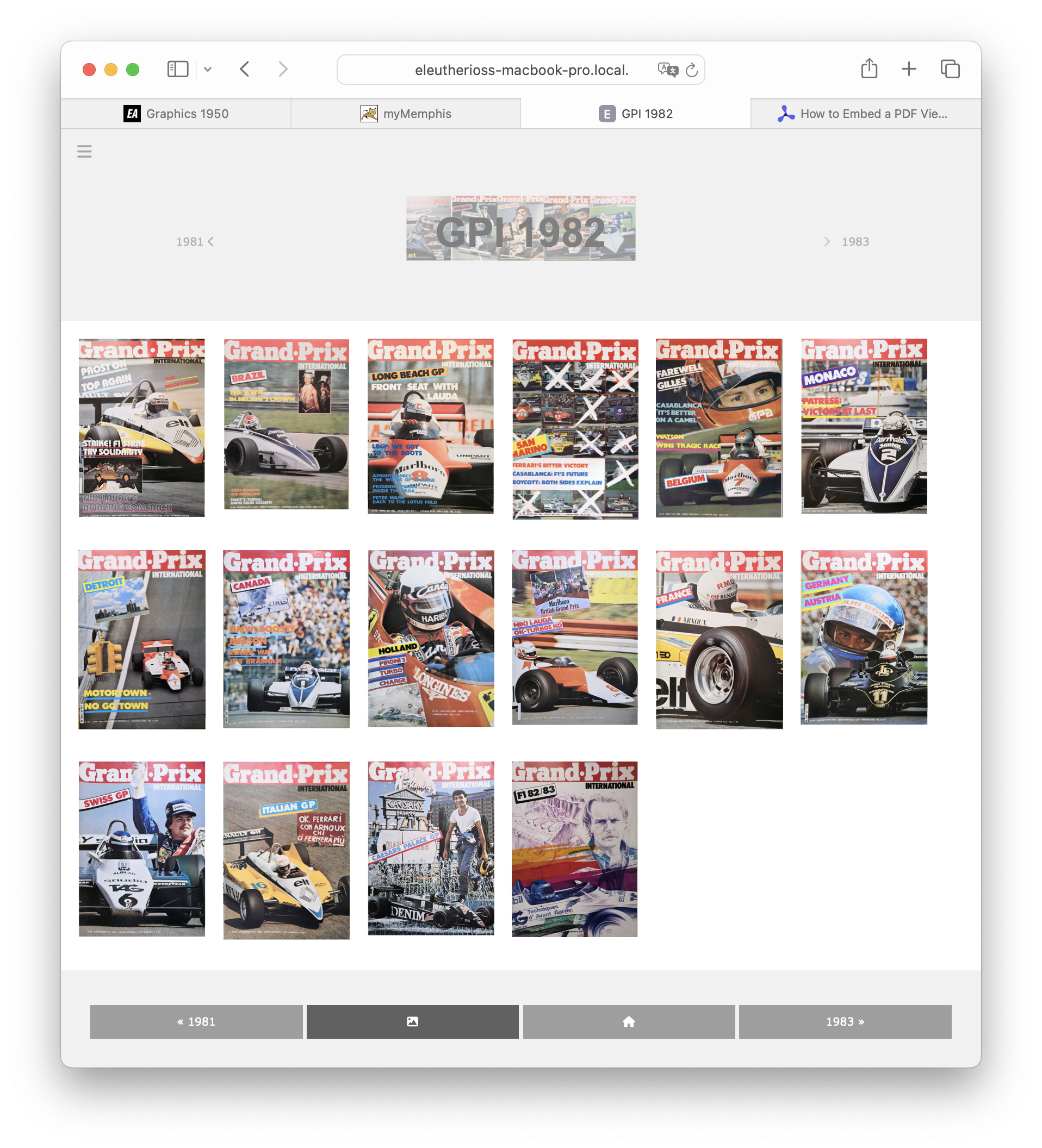 Ich habe alle Titelblätter als jpg produziert, den Browser HTML-Code als Basis genommen, und auf die Schnelle paar statische Seiten zusammengebaut. Beim Anklicken eines Titelblattes geht ein neuer Tab im Browser auf, und man kann das Dokument in dem Tab auf der ganzen Größe durchscrollen. Alles zusammen dauerte 4h - während einer Zugfahrt nach Norden.