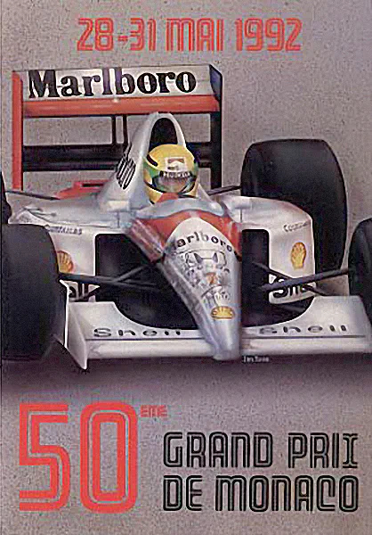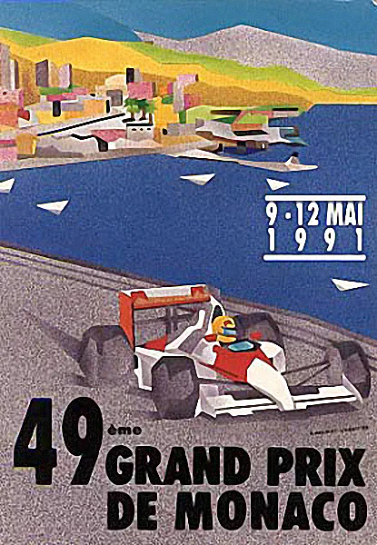 Bei jedem Grand Prix seit 1950 gibt es ein "offizielles" Plakat. 1991 bis 1995 haben - in wechselnder Besetzung - Axel, Gero, Martin, Vojko, Elmar, Manne, Achim und ich, zu Christi Himmelfahrt einige Tage in Ligurien (meist Alassio) verbracht und das Rennen/Qualifying in Monaco besucht. Das Rennen war früher immer zu Christ Himmelfahrt.Das Auto haben wir in Ventimiglia abgestellt und sind dann mit dem Zug nach Monaco - was für eine Kulisse, was für ein Leben! Mit den unbeschwerten Tagen Ende Mai fing der Sommer an. "I do delare the summer season as opened" lautete die Formel. Als Memorabila habe ich jedes Jahr eine Postkarte, ein T-Shirt oder das offizielle Programm mit dem Poster drauf gekauft. Manchmal habe ich alle drei Dinge mitgebracht. All diese "Dinge" (und andere) sorgen jetzt dafür, daß das Haus "voll" ist mit (für alle anderen) völlig wertlosen Gegenständen. Es sind aber nicht die Gegenstände die einen Wert haben und an denen man hängt. Es sind die Gefühle und Erinnerungen die mit ihnen verbunden sind.