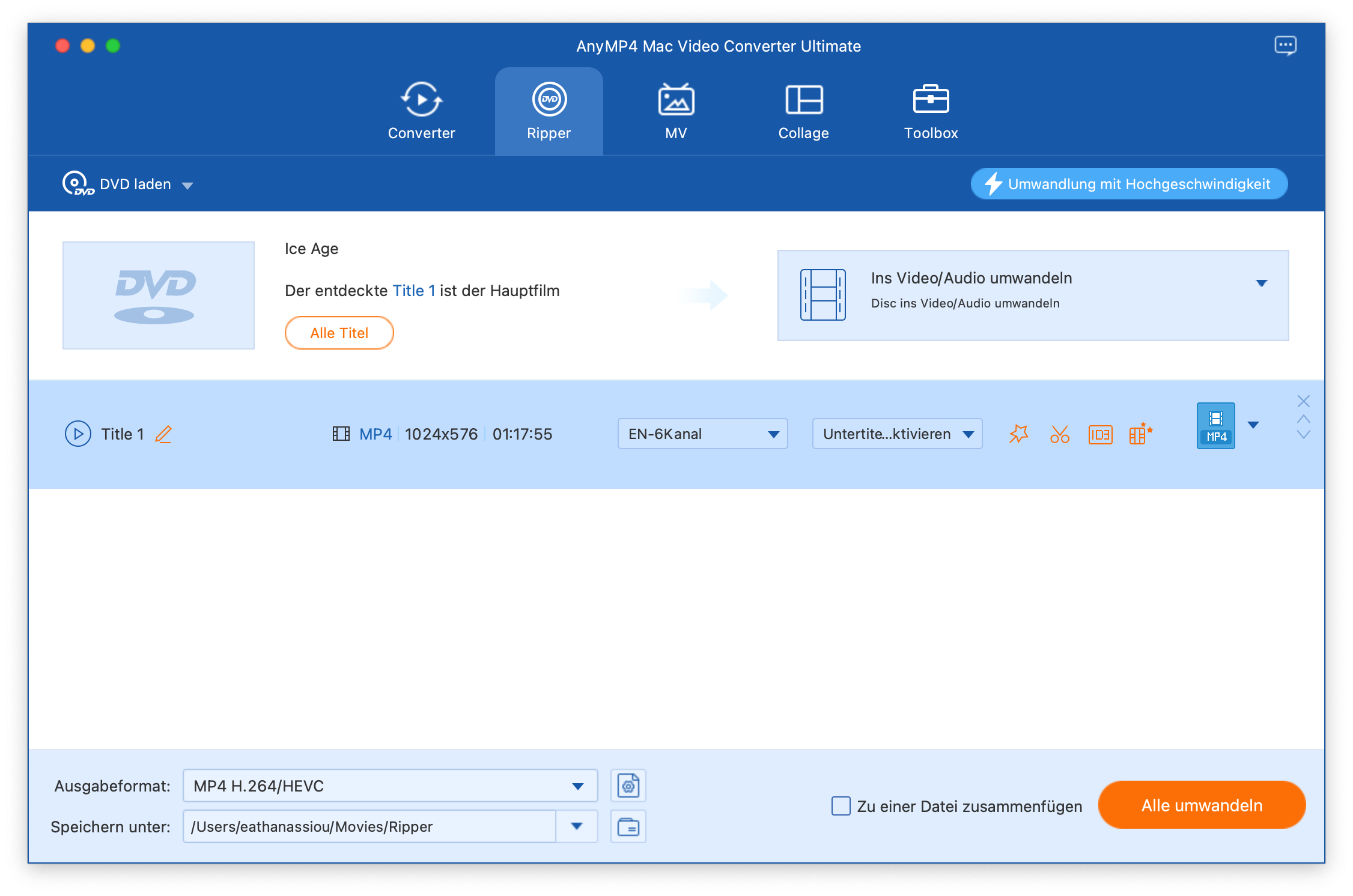Der zeitaufwändigste Teil. Die Software AnyMP4 "did the job". Ob die DVD als Datei oder DVD vorliegt, sie konvertiert alles stabil, recht zügig und ohne Qualitätsverlust.