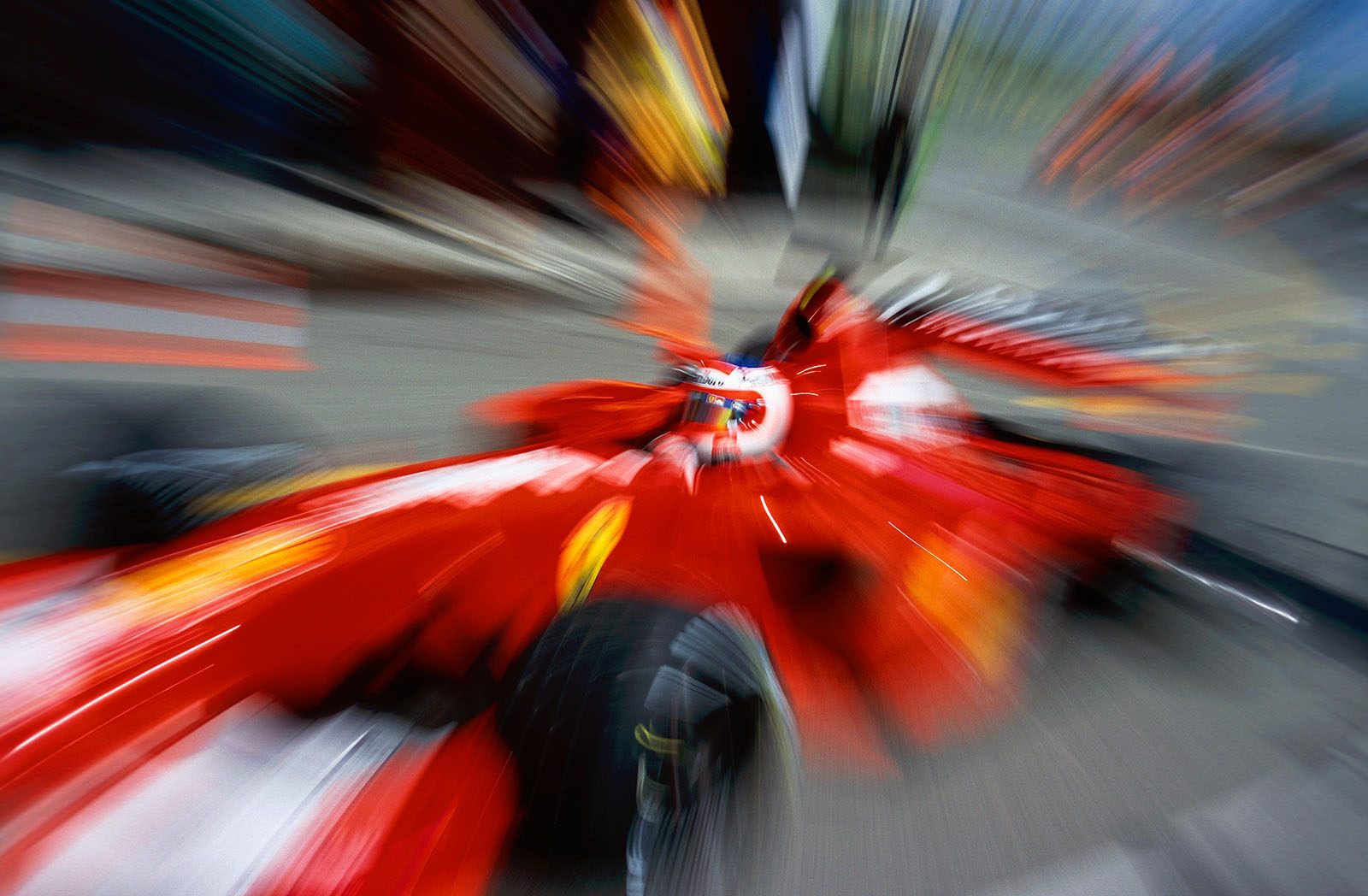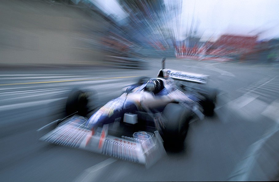 Das erste Bild in obiger Reihe zeigt Stefan Johannson in Monaco 1985 bei Anbremsen einer Schikane. Das typische Turbofeuer und die Zoom Technik ergeben einen dramatischen Eindruck, an einer relativ langsamen Stelle des Kurses. Das Photo wurde von Kodak in einer Werbekampagne verwendet. Ich habe das Bild ausgeschnitten und jahrelang in einem kleinen rahmenlosen Bildhalter aufgehängt - bis es verblichen war. Ähnlich "ikonisch" sind die jährlichen Bilder von der Schlegelmilch Corner aus Monaco: