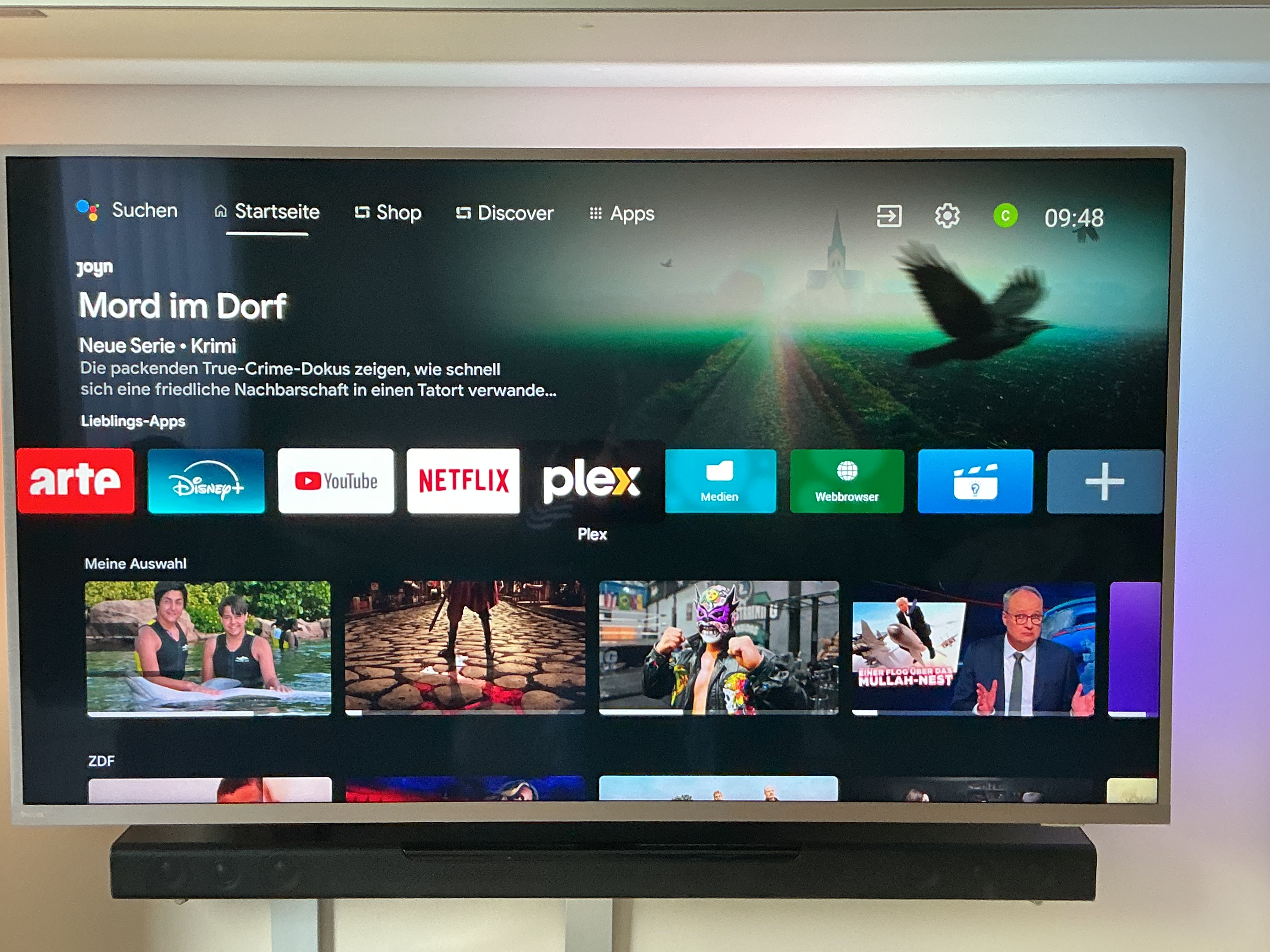 Unsere Philips-Fernseher laufen mit Android TV, da ist Plex bestens aufgehoben. Die App ist im Google Play Store des Fernsehers zu finden und zu installieren.