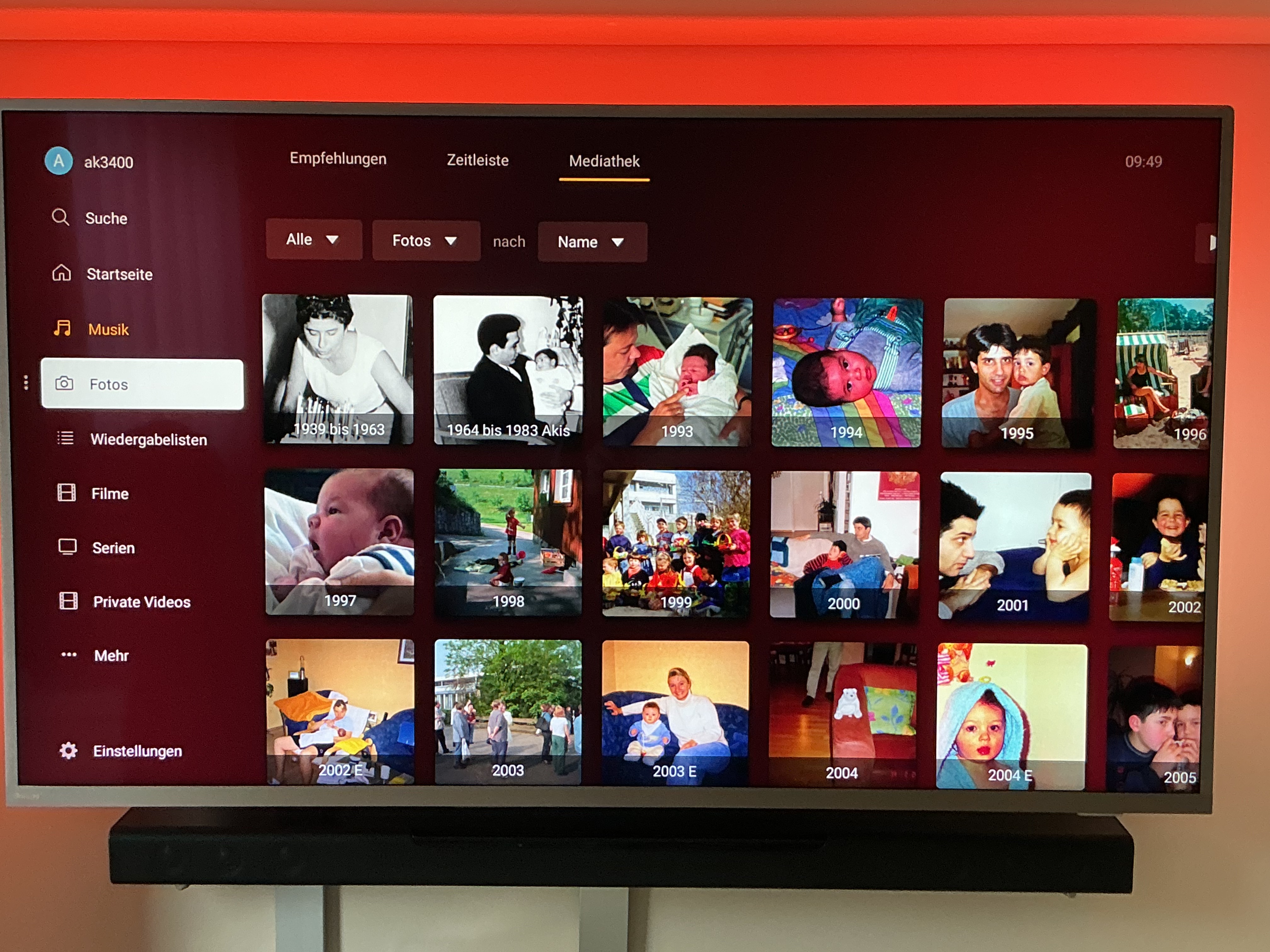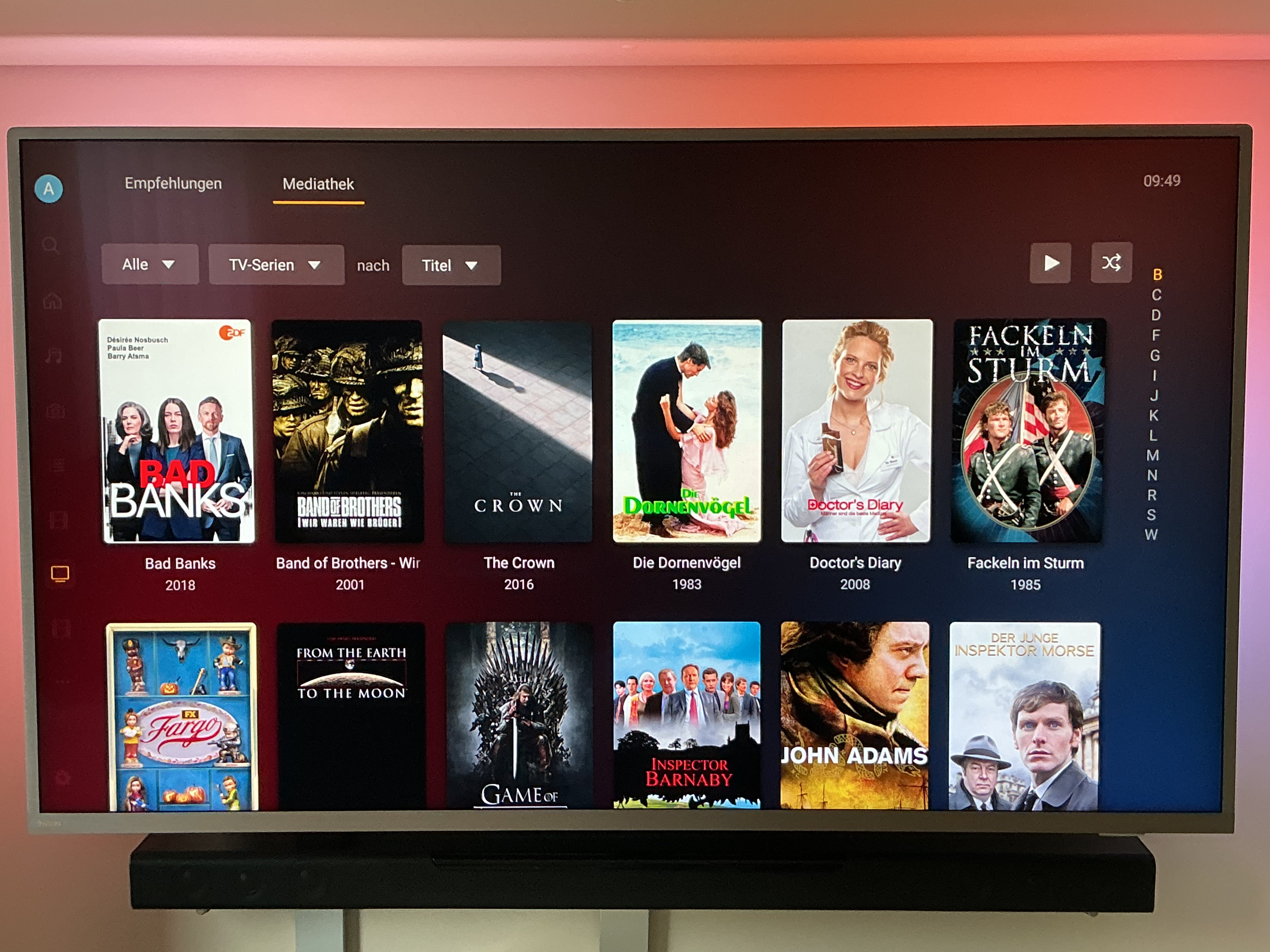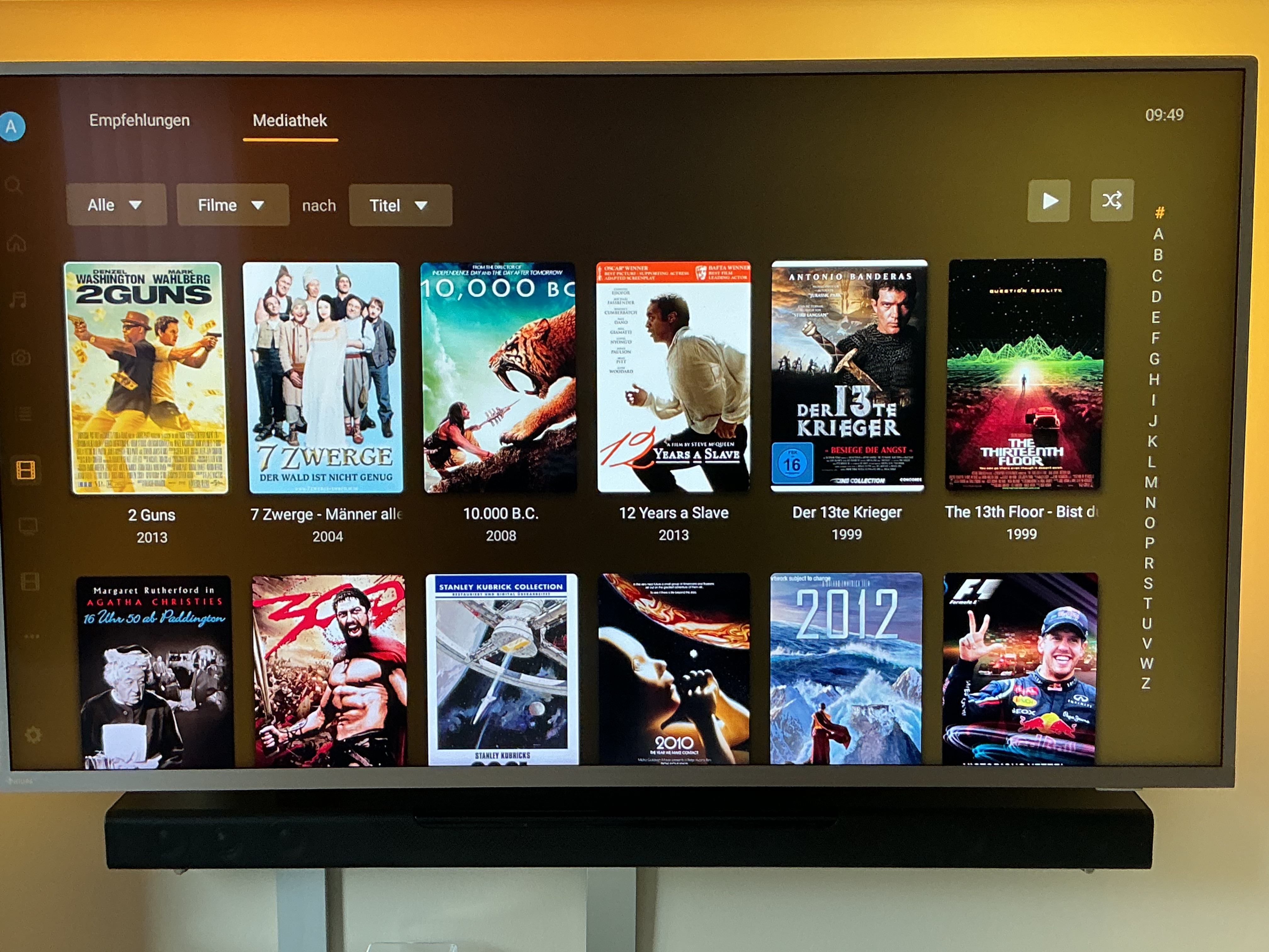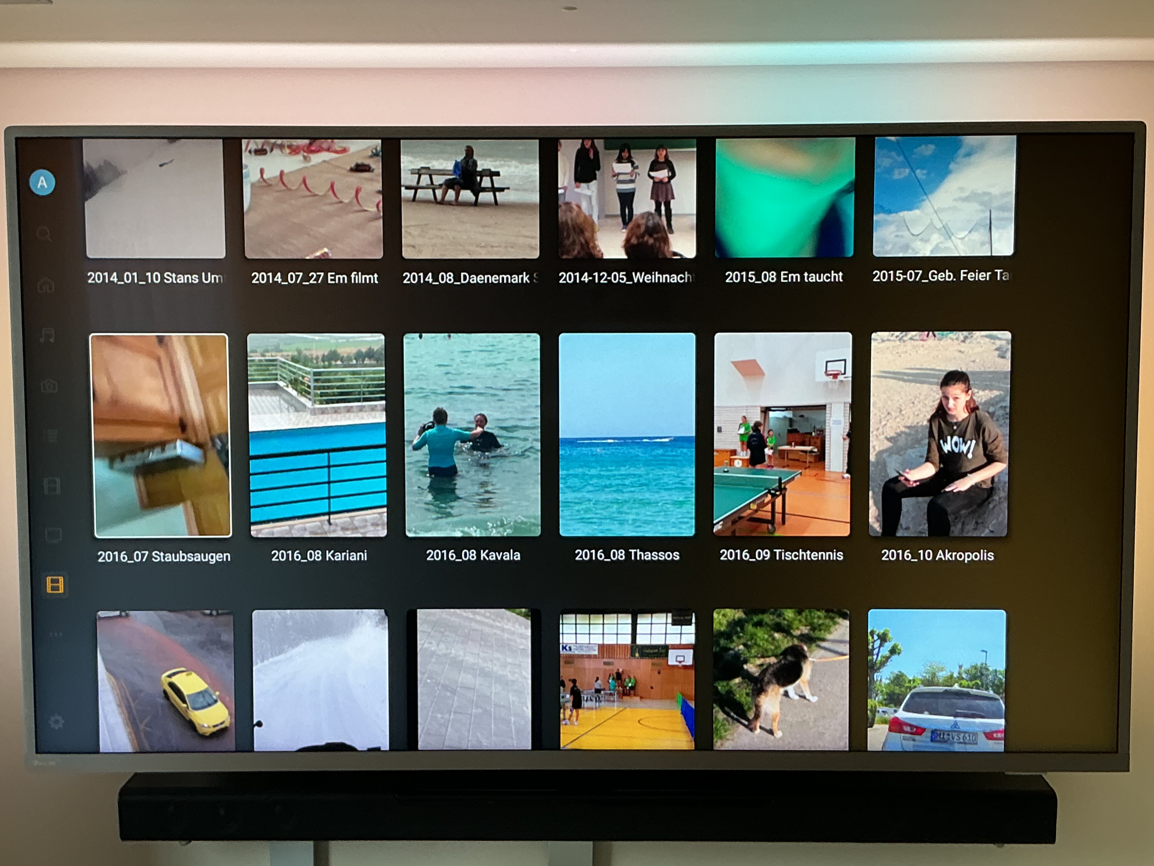ich hatte unsere komplette Medien -Bibliothek auf dem großen Bildschirm — mit Fernbedienung bedienbar, in voller Auflösung bis 4K.
