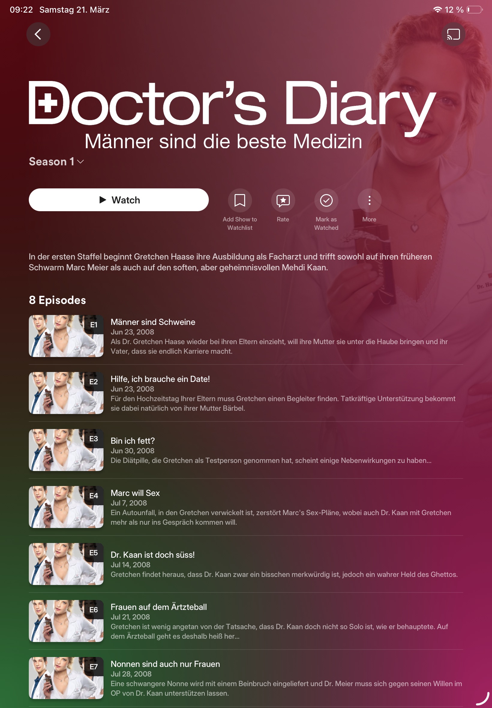 Auf dem iPad/iPhone ist Plex eine vollwertige App aus dem App Store — sauber optimiert für das große iPAd Display. Man bekommt die komplette Bibliothek und das Bild-im-Bild funktioniert